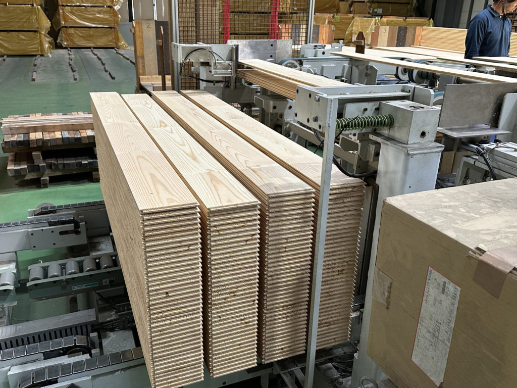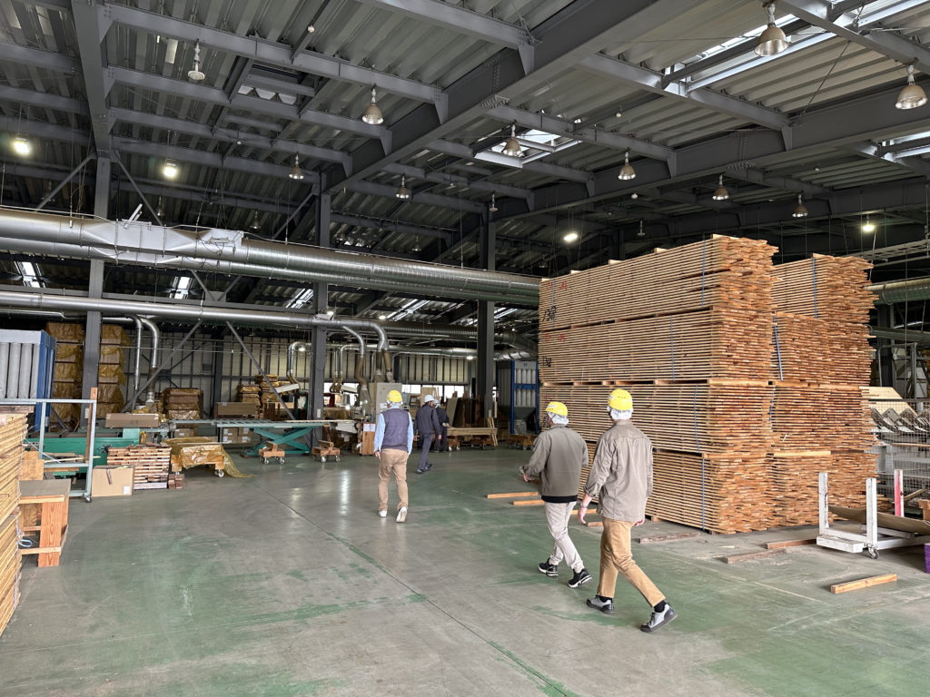 その後は当社でも仕入れさせてもらっているフローリングの工場見学。