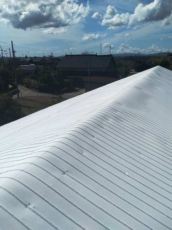 大屋根にすでに敷設されていましたね。通常よく見かける黒やグレーのゴムアスルーフィングとは違い、真っ白なガイナルーフは直射日光を浴びても色からして熱をため込まなさそうですWW