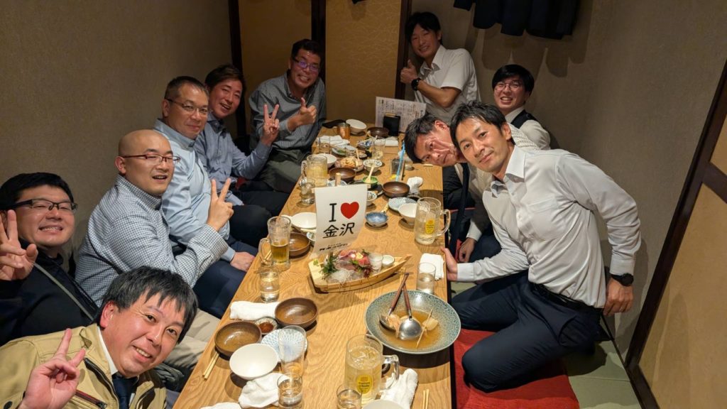 今回金沢での会議でしたが東京、長野、仙台からもメンバー来ていただけましたので懇親会。