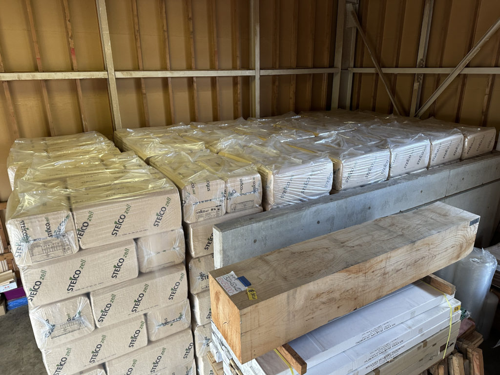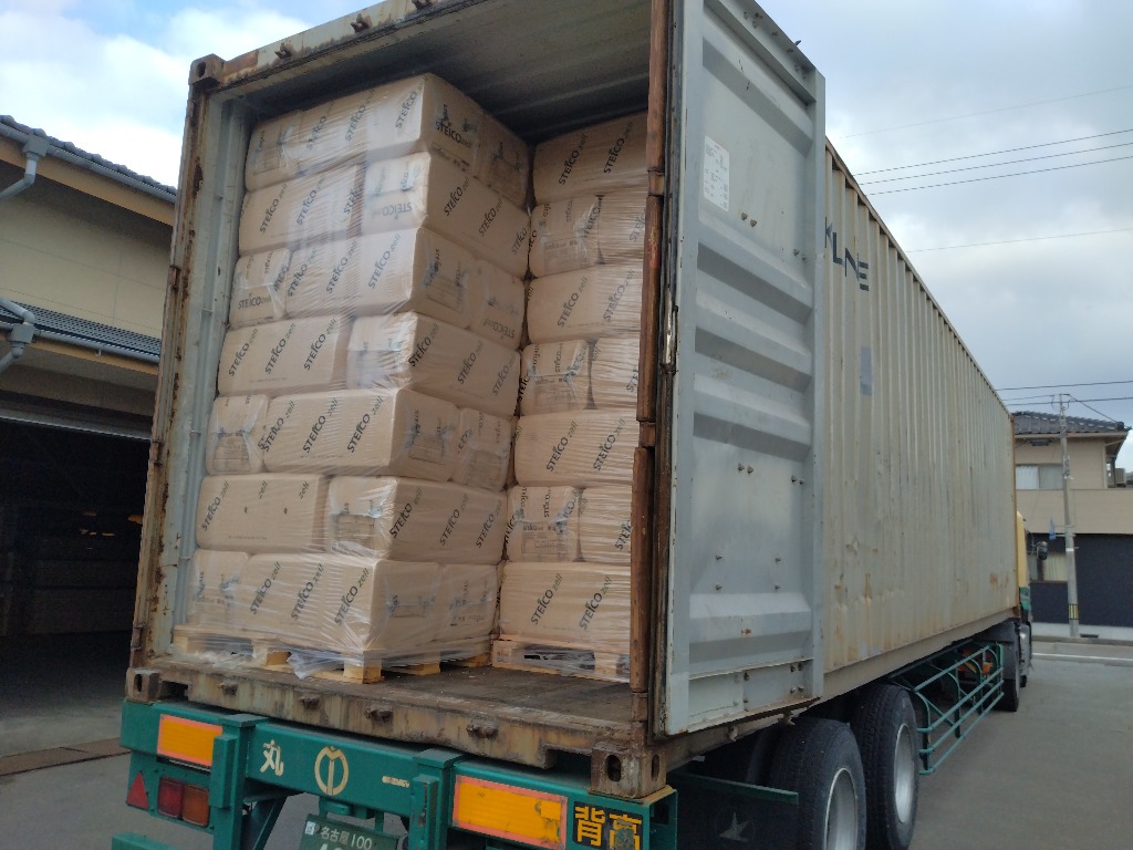 先日当社倉庫に木の断熱材「シュタイコ」が入荷してきました。