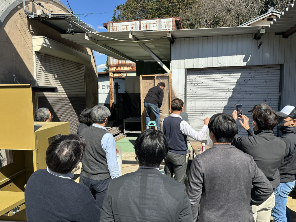 先日、木の断熱材「シュタイコ」のブローイング機械の見学会を行いました。